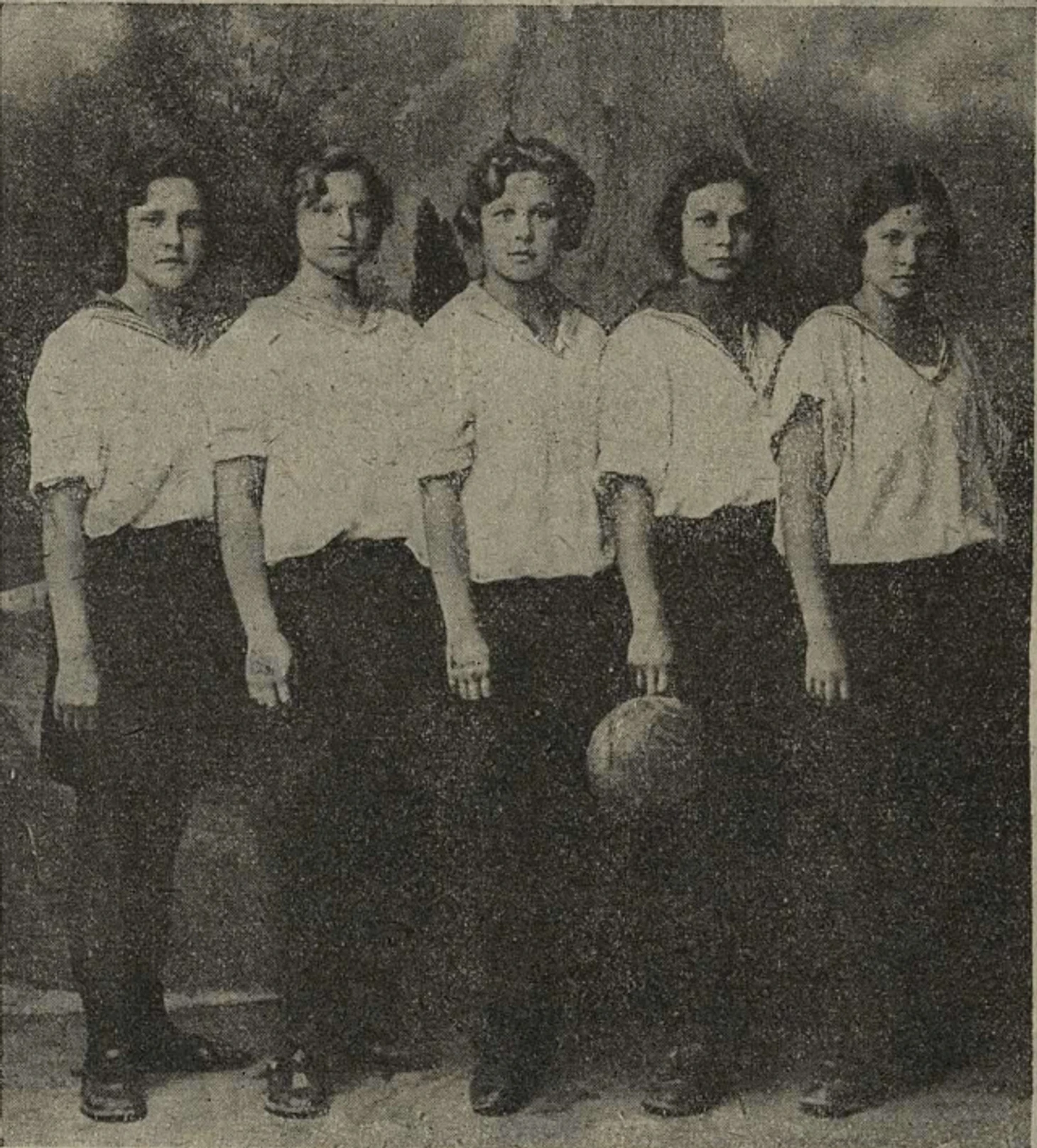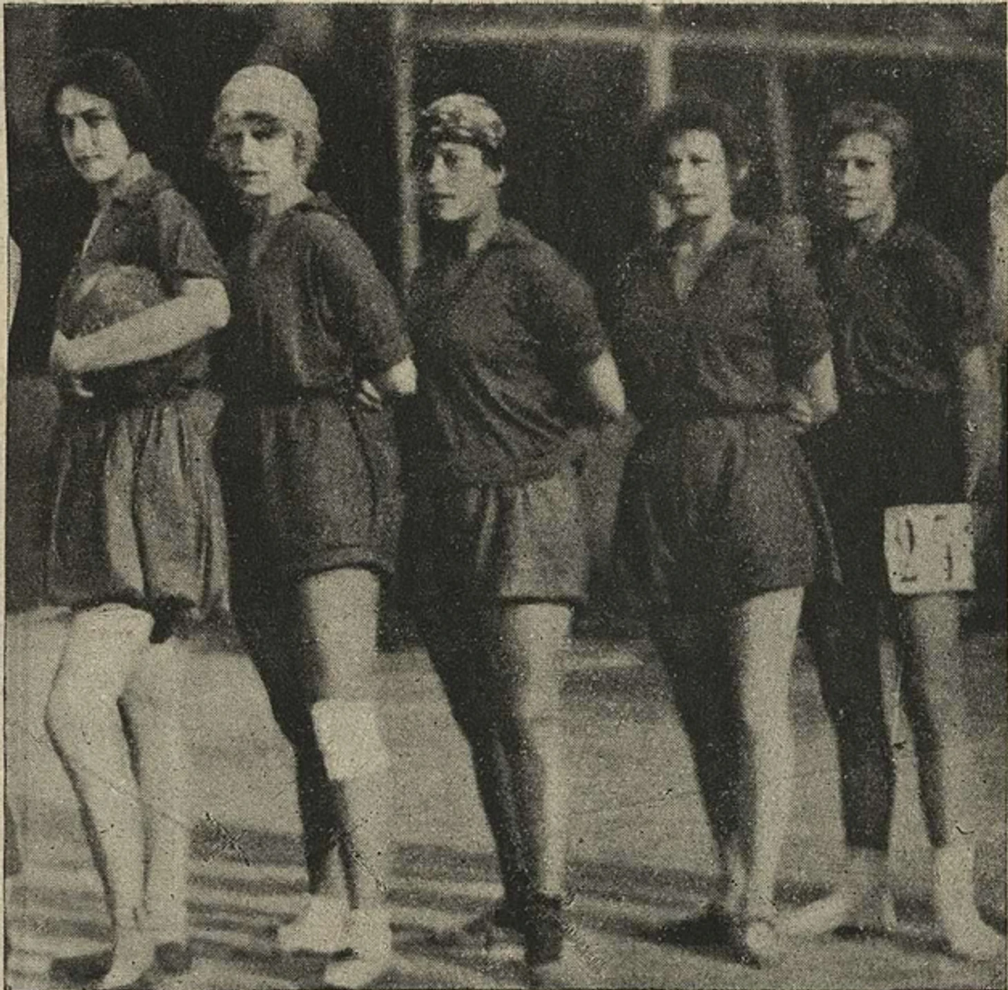 «Динамо» (Москва) — зимний чемпион Москвы-1924: З. Домбровская, Н. Копьева (капитан), А. Салаутина (в будущем заслуженный мастер спорта и чемпион СССР), З. Корьева, В. Журавлева