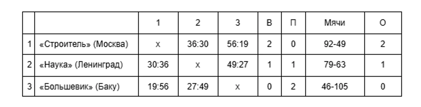 Сборная Ленинграда в первом матче на своей площадке добилась самой уверенной победы за два года, переиграв Тбилиси — 42:17. Но увы, надежды на то, что команда сможет побороться за самые высокие места, улетучились у ленинградских зрителей уже во втором туре, когда хозяйки проиграли скромной сборной Риги —14:17, не сумев ничего противопоставить зонной защите латвиек. А в третьем туре уступили в матче с другим представителем Прибалтики, сборной Каунаса — 16:21.