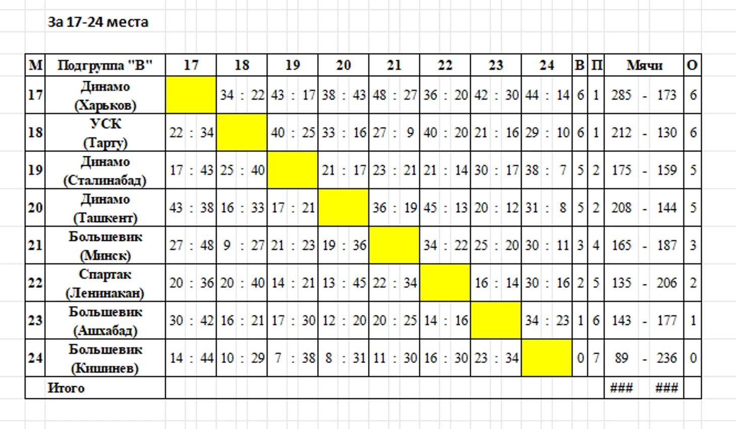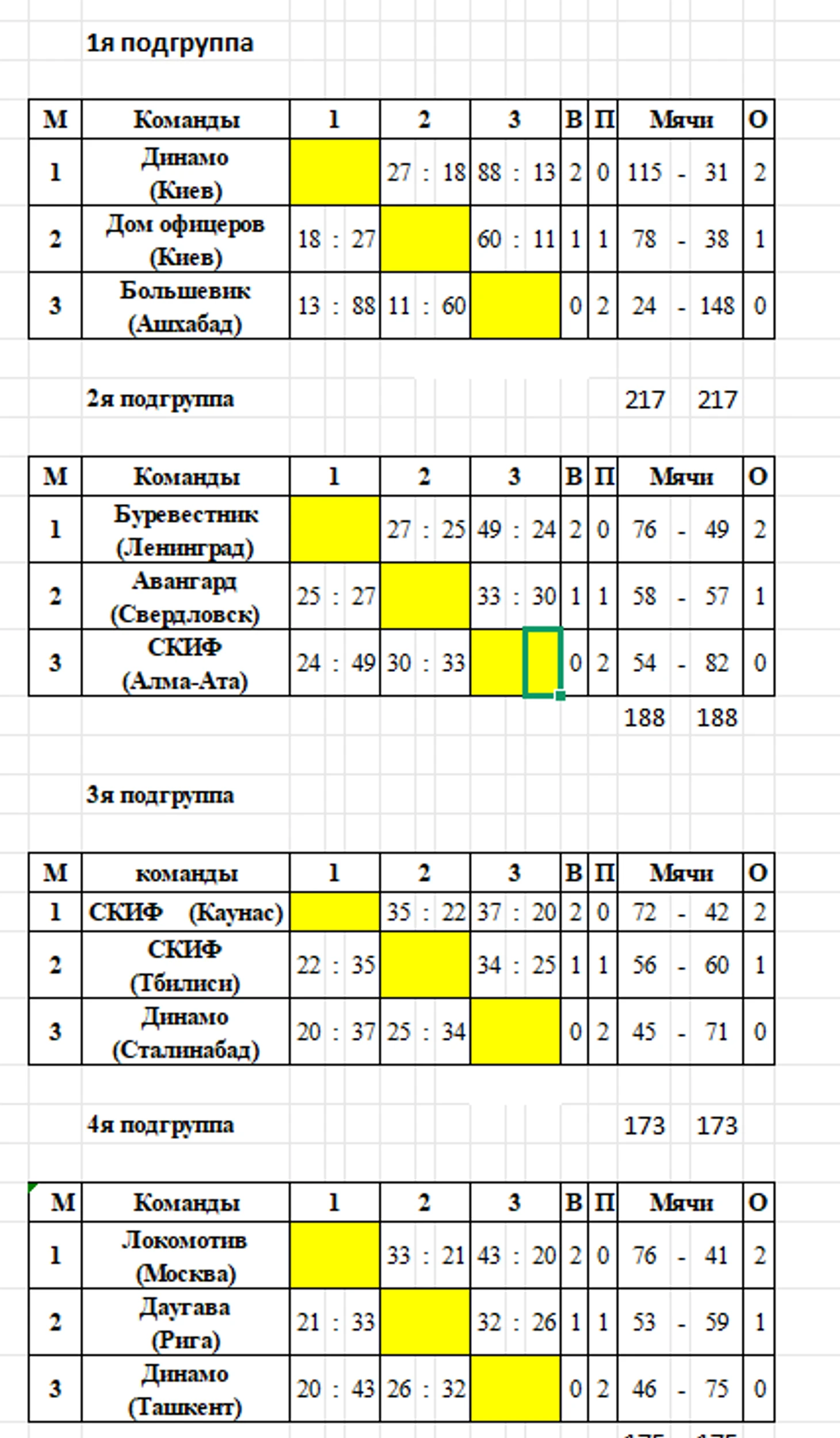 11 сентября 1949. Харьков. Матч предварительного турнира XVI чемпионата СССР «Авангард» (Свердловск) — «Динамо» (Харьков) — 33:30