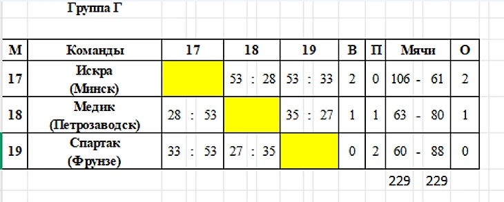 При равенстве очков у трех команд места распределялись по лучшей разнице заброшенных и пропущенных мячей во встречах между собой. При равенстве очков у двух команд места распределялись по результатам личной встречи