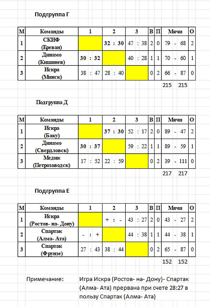 В Баку равной борьбы не получилась — здесь две уверенные победы одержал МАИ. В Ташкенте доминировал рижский СКИФ. В финале минской зоны киевское «Динамо» переиграло вильнюсский УСК — 26:18.