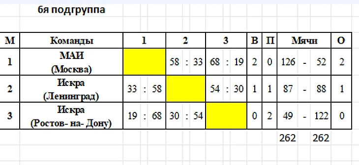 В подгруппе «В» второе место заняла рижская «Даугава», переигравшая киевское «Динамо» с минимальным перевесом — 17:16. МАИ в этой группе был значительно сильнее соперников.