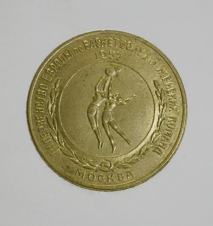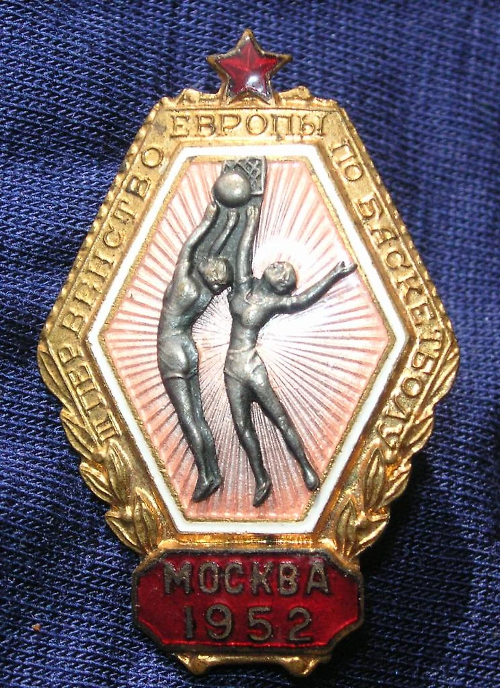 1952 год. Значок и медаль III чемпионата Европы по баскетболу