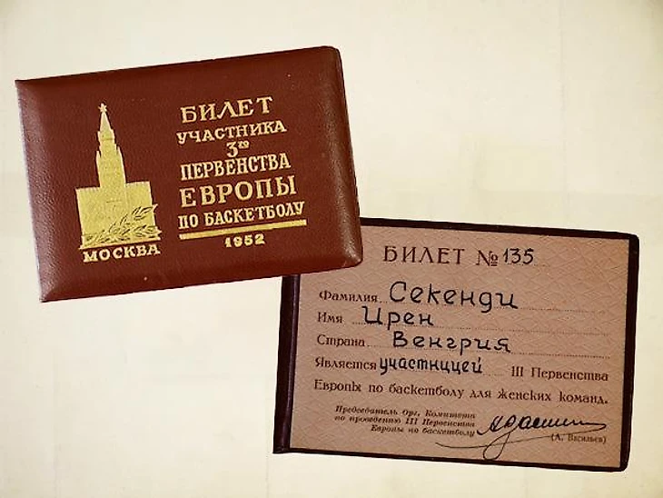 1952 год. Билет участника соревнований первенства Европы, выданный игроку сборной Венгрии Ирен Секенди