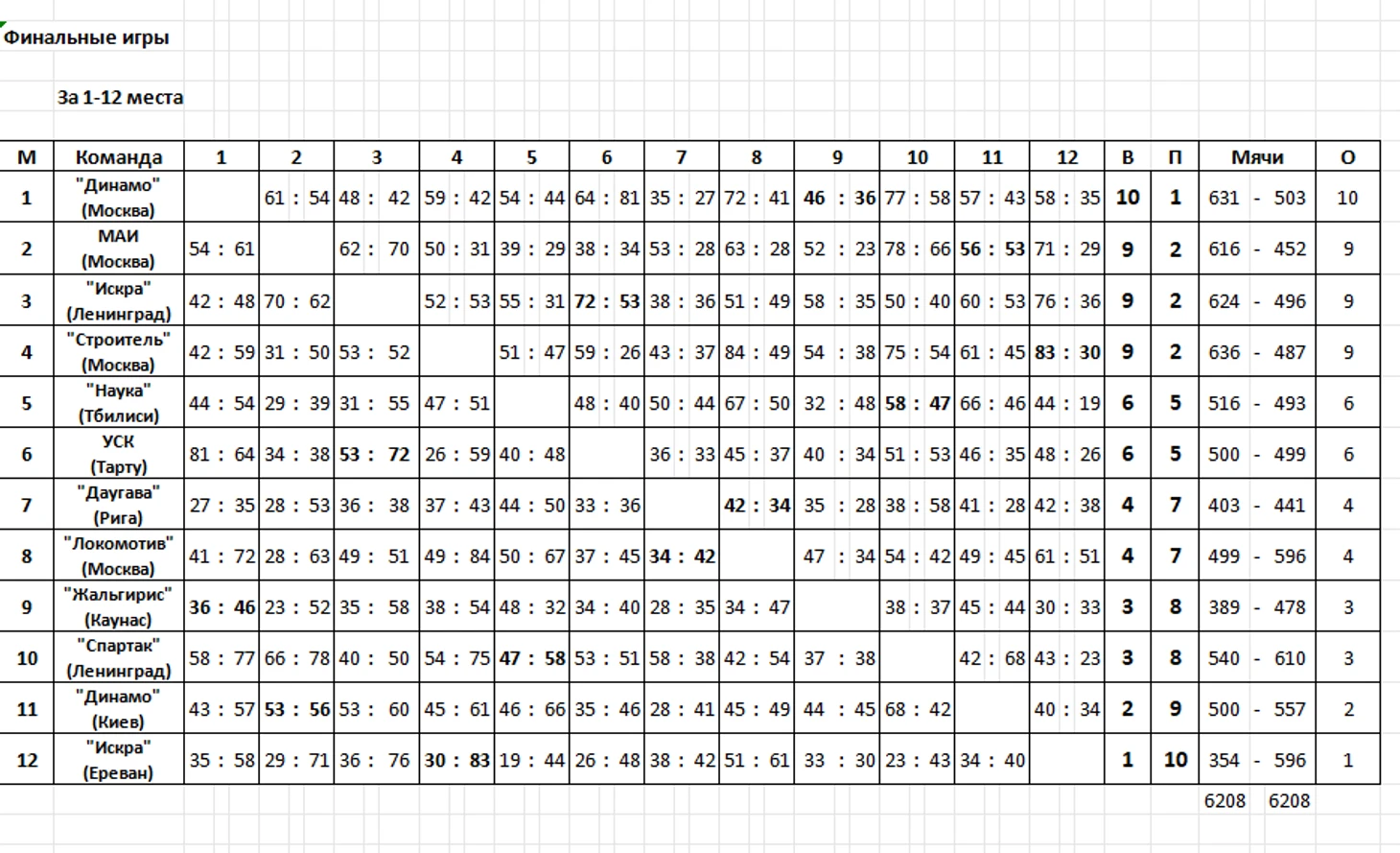 Московское «Динамо» побеждает действующего чемпиона СССР («Строитель») — 59:42.