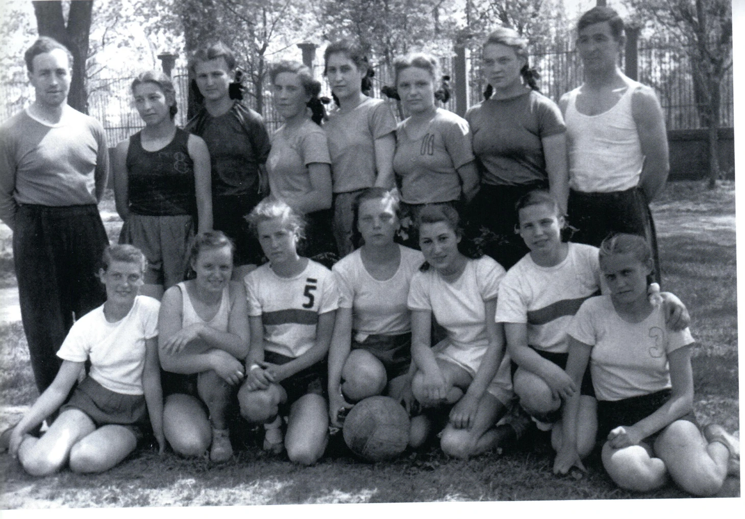 1949 год. Сборная Москвы среди девочек с тренером Александром Зининым. Сидит пятая слева — Нина Арцишевская