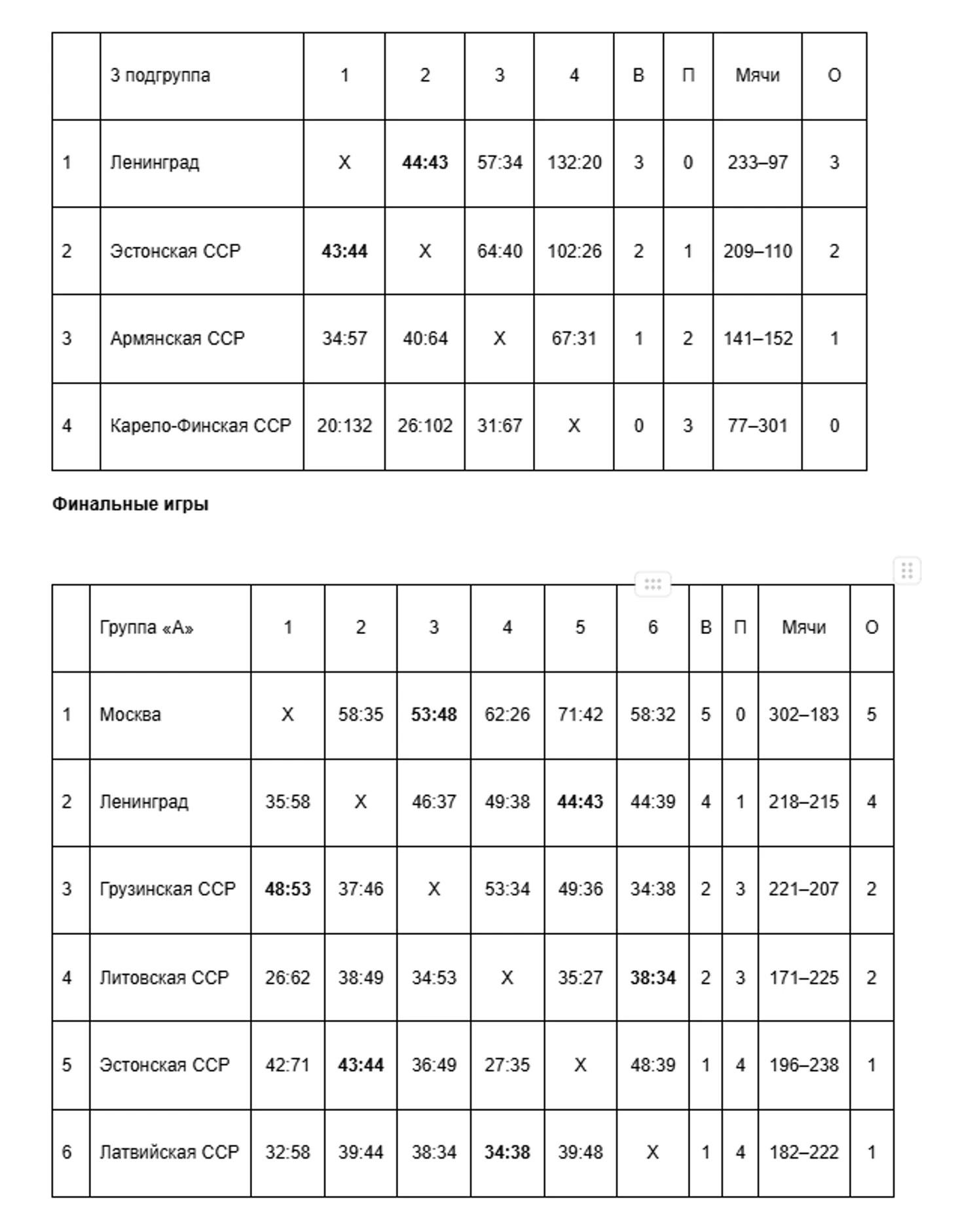 Сборные Ленинграда и Эстонии были на голову выше соперников в третьей подгруппе, в личной встрече дошло до овертайма, где команда с берегов Невы была чуть удачливей — 44:43.