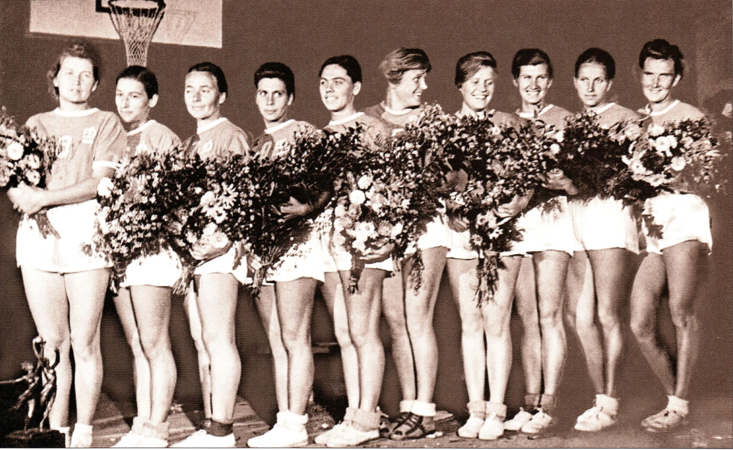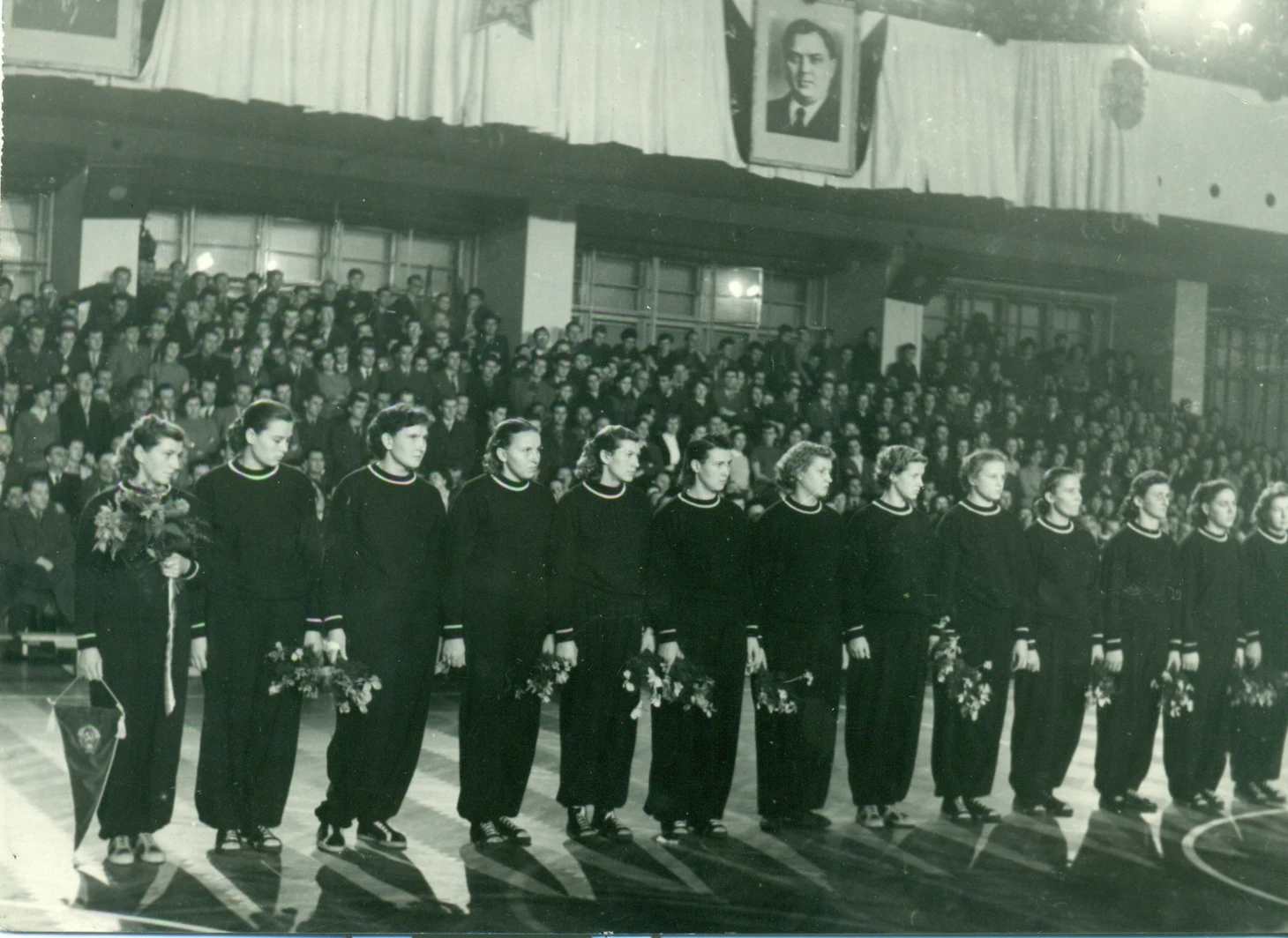 Москва — победитель Всесоюзных соревнований в закрытом помещении: Лидия Алексеева, Нина Арцишевская, Евгения Зарковская, Валентина Копылова, Нина Максимова, Нина Максимельянова, Тамара Моисеева, Валентина Куллам (Назаренко), Нина Урданг, Галина Ярошевская (Степина). Тренер — Владимир Васильевич Горохов.