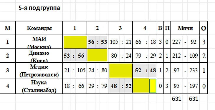 Самый интересный матч первого этапа — противостояние МАИ и киевского «Динамо». Московской команде долго не удается оторваться, пока Алексеева не попадает шесть раз подряд со средней дистанции — 56:53, и студенческая команда идет дальше с зачетным очком. Киевское «Динамо» — уже не то. Костяк прежней команды во главе с тренером Егоровым теперь выступает за команду Киевского политехнического института (КПИ), который в чемпионате республики выступает под названием СКИФ.