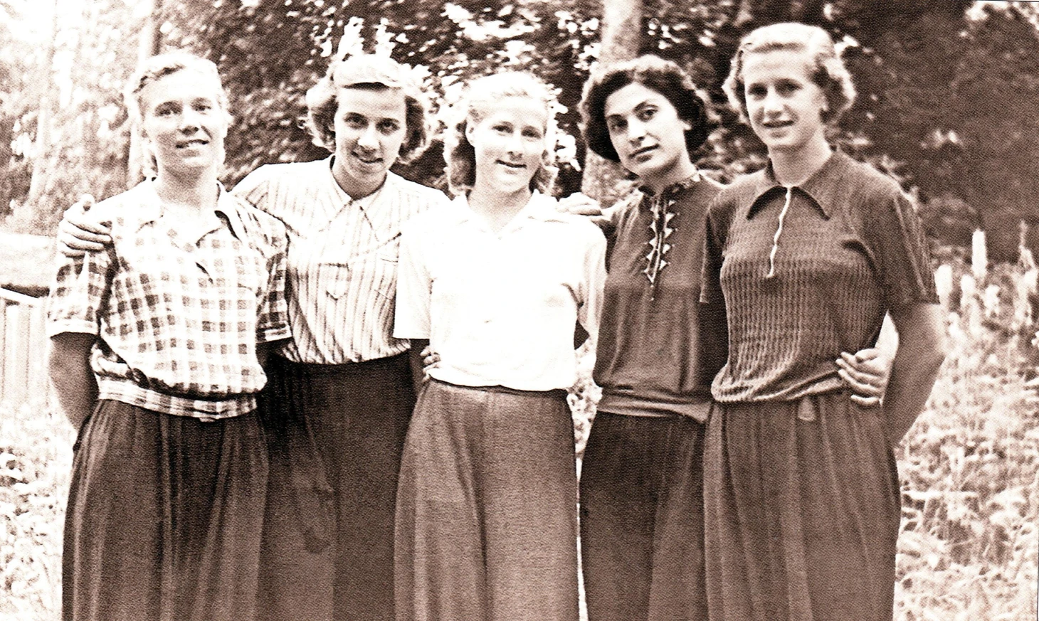 1953. Серебряный бор. Фото во время сборов национальной команды (слева направо): Галина Степина (Ярошевская), В. Гнетова, Нина Познанская, Алиса Аситашвили, Нина Арцишевская