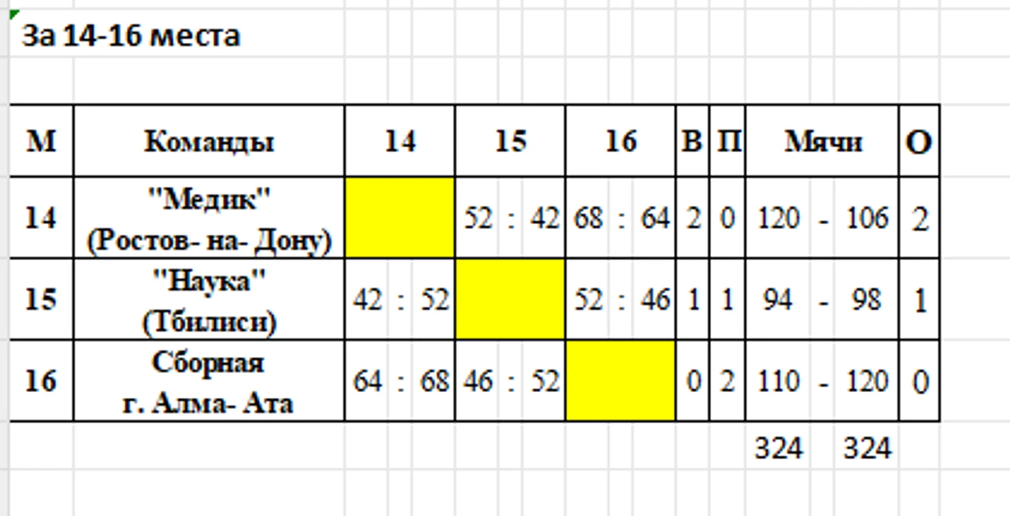 Третью строчку разыгрывали «Строитель» и тбилисская «Наука». Грузинки подошли к решающему матчу с хорошим настроением — недавно они уверенно переиграли ленинградскую команду 56:33. Но «Строитель» пока все же сильнее — 42:38. За ним третье место. Но и у Тбилиси в чемпионате страны успех, впервые он забирается как никогда высоко — на четвертую позицию.