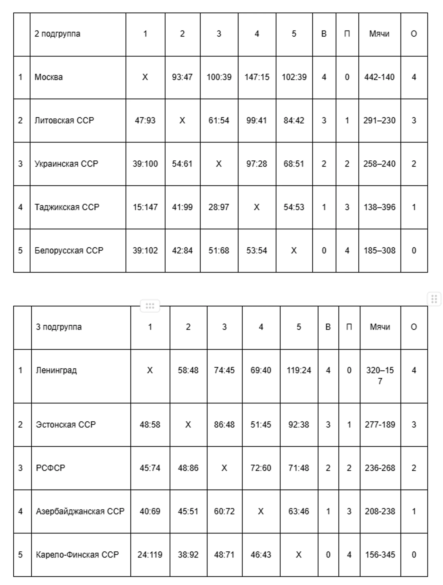 Сборная РСФСР прошлый турнир провалила, но на этом смотрелась интереснее. Проиграла на старте Ленинграду (45:74), а в заключительном матче с Эстонией оспаривала вторую путевку в финальную шестерку. Увы — не в этот раз.