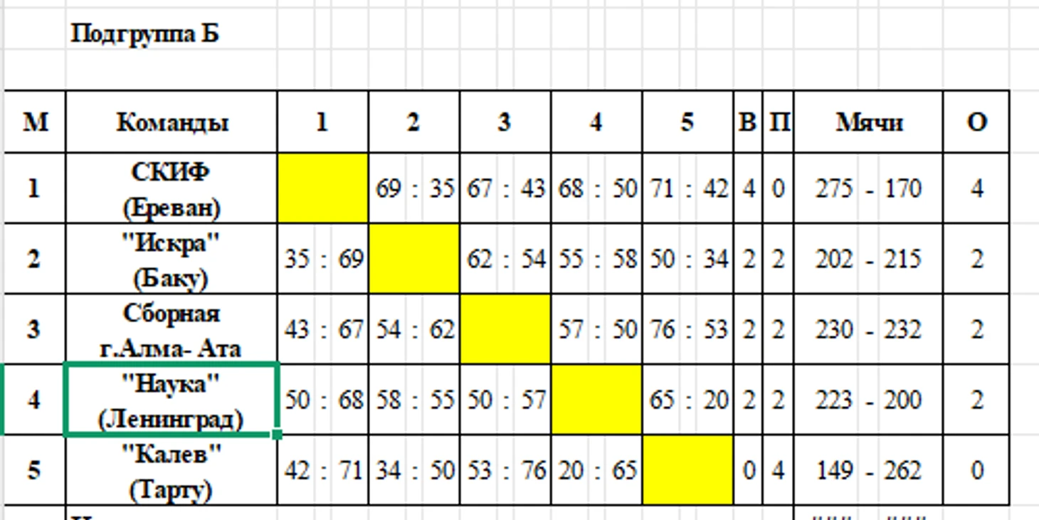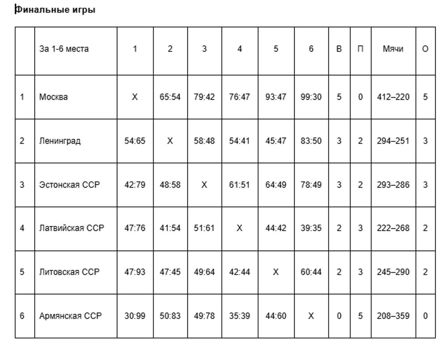 Ленинград проиграл еще и Литве — в овертайме 45:47, но благодаря победе набравших равное с ним очков сборной Эстонии в очном матче (58:48) занимает третье место.