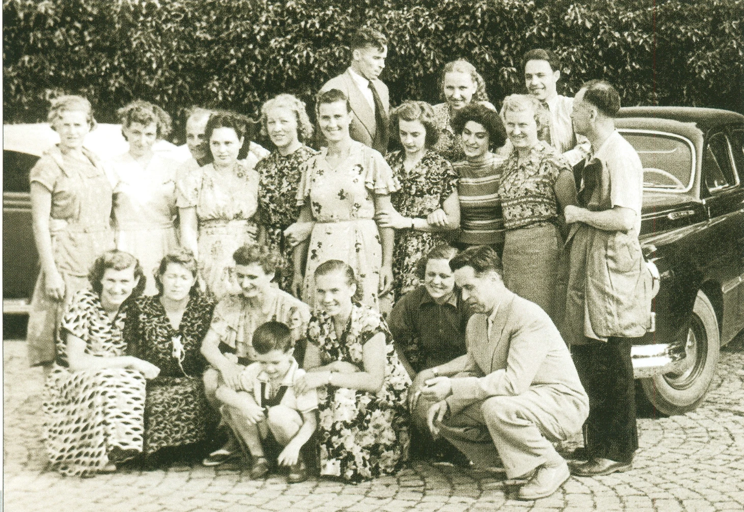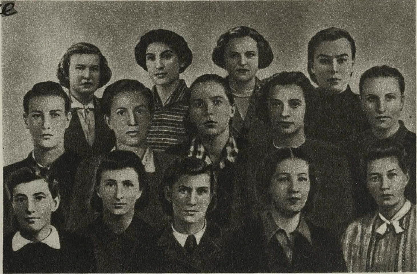 Июнь 1954. Белград, Югославия. Перед началом IV чемпионата Европы. Во дворе посольства СССР в Югославии. Сидят (слева направо): Нина Максимова, Евгения Зарковская, Валентина Копылова, Галина Ярошевская (Степина), Марет-Май Отса, Игорь Беляев. Стоят: Нина Арцишевская, Лидия Алексеева, ?, Раиса Маментьева, Тамара Моисеева, Дзидра Узтупе (Карамышева), Алиса Аситашвили, Нина Зазнобина. В третьем ряду: Нина Максимильянова, Иван Лысов