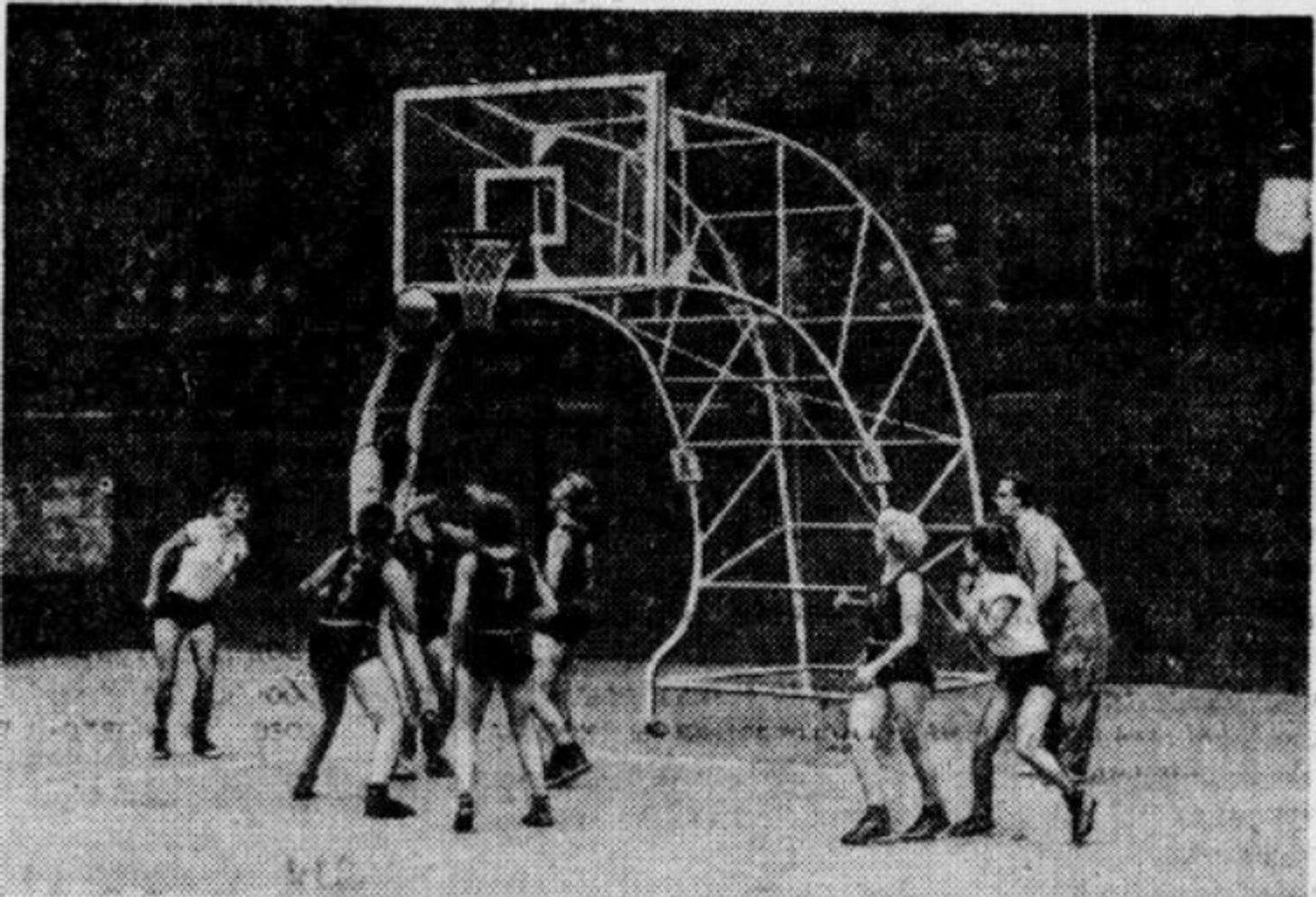 Как такового баскетбольного помоста не было — на стадионе «Ташмайдан» баскетбольную разметку нанесли прямо на грунт. Этакий ретро-формат площадки.