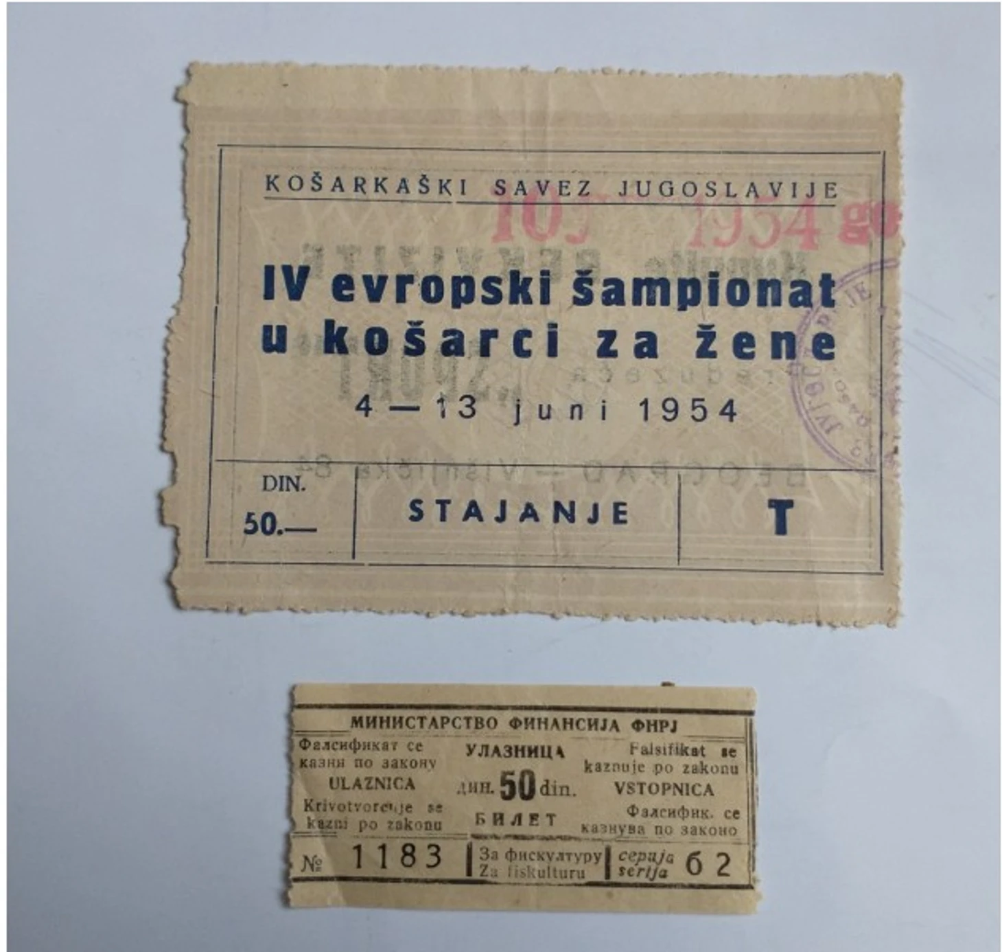 1954 год. Белград, Югославия. Билет на место стоя IV чемпионата Европы
