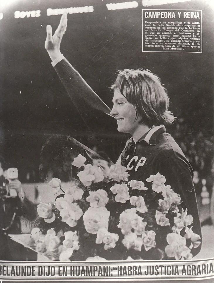 «Без макияжа и искусственности прекрасная Смилдзиня покорила сердца жителей Лимы, которые признали ее своей любимицей. После соревнований, в которых ее команда, мощный и гигантский российский квинтет, стала чемпионом, ее красота, которую кто-то назвал «дикой», ее техническое мастерство и, прежде всего, ее огромное обаяние принесли ей отдельный титул: «Мисс Мундиаль».
