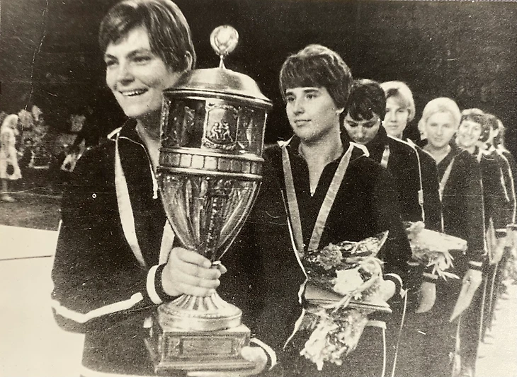 26 апреля 1960. Рига. ТТТ (Рига) — обладатель Кубка Европы для клубных команд. Сидят (слева направо): Ингрида Струповича, Скайдрите Смилдзиня, Сармите Мартынова, Иоланта Калныня, Сильвия Равдоне. Стоят: Ивета Краукле, Вита Силиня, Хелена Битнере, Лигита Алтберга, тренер Ольгерт Алтбергс, Гуна Карлсоне, Инара Пиртниека, капитан Дзидра Карамышева