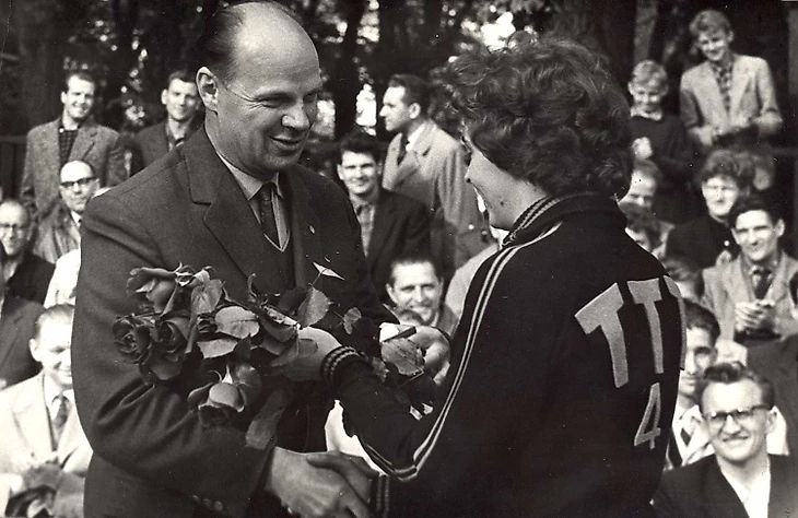 1961. Дзидра Карамышева и главный тренер ТТТ Ольгерт Алтбергс