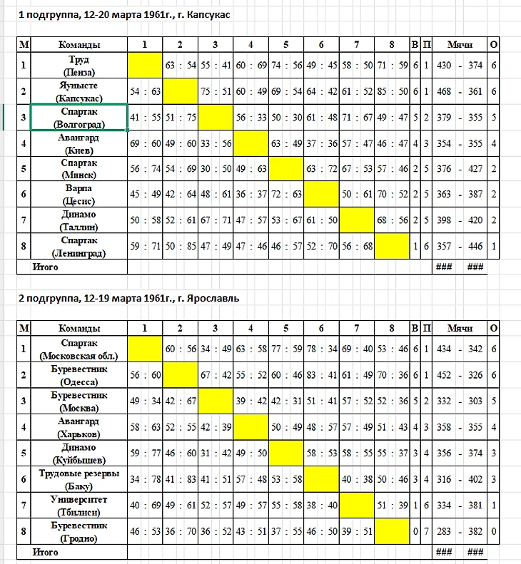 1 июля 1961. Рига. Второй финальный матч III розыгрыша Кубка Европы для клубных команд ТТТ-«Даугава» (Рига) — «Слован-Орбис» (Прага, Чехословакия) — 72:37