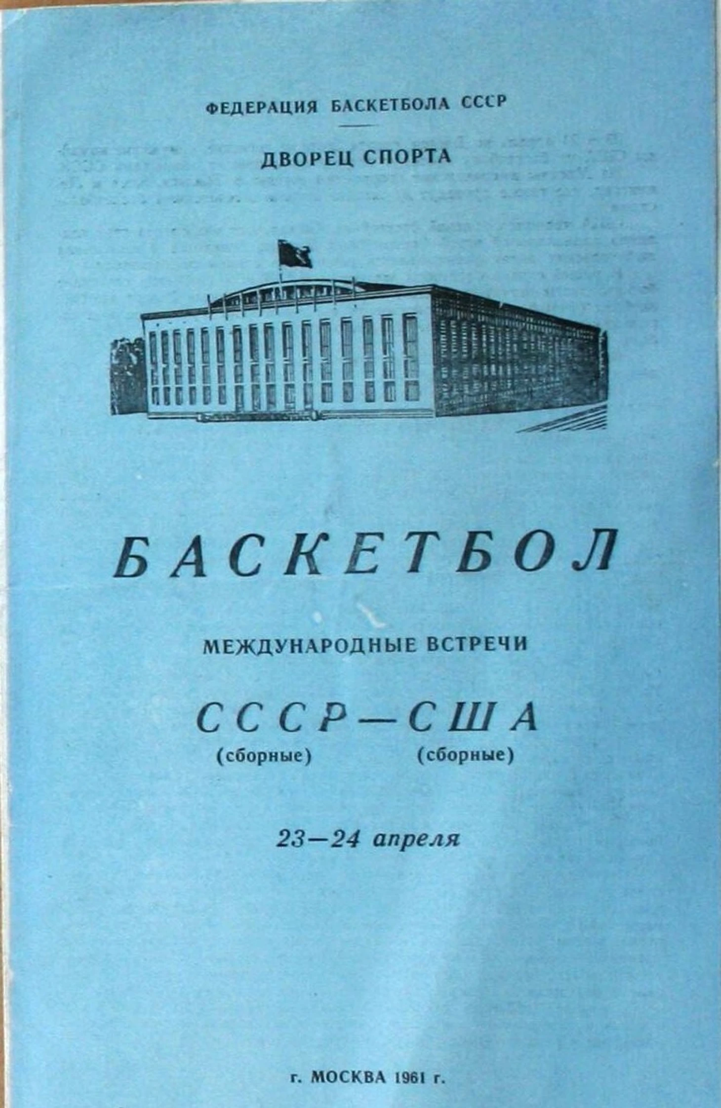 Товарищеские матчи в Москве. СССР — США — 65:48 и 55:45. 23 и 24 апреля 1961.