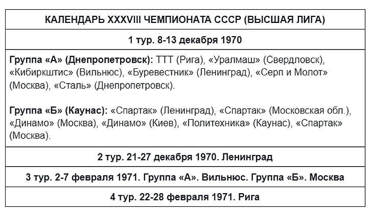 XXXVII чемпионат СССР. Высшая лига. 8 декабря 1970 — 28 февраля 1971