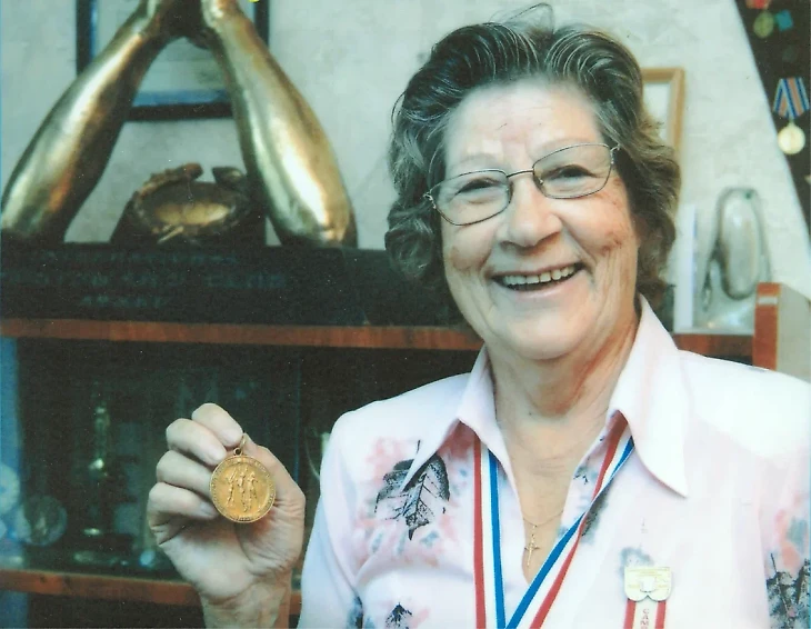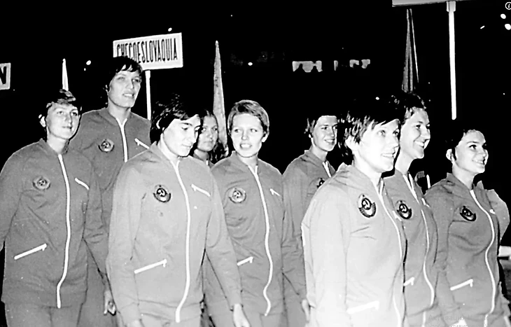 1970. Сборная СССР — чемпион Европы. Сидят (слева направо): Зинаида Черникова, Нелли Бильмаер, Ульяна Семенова, Людмила Крестьянинова, Людмила Швецова, Галина Воронина. Стоят: тренер Василий Колпаков, Людмила Базаревич, запасная Евгения (Феодора) Кочергина (Орел), Виктория Дмитриева, Людмила Гусева, Людмила Бубчикова, Надежда Захарова, Татьяна Кабаева, главный тренер Лидия Алексеева