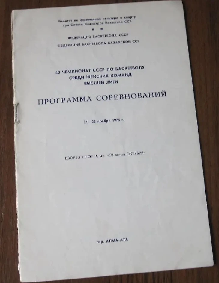 Ноябрь 1975. Алма-Ата. Программа первого тура XLIII чемпионата СССР