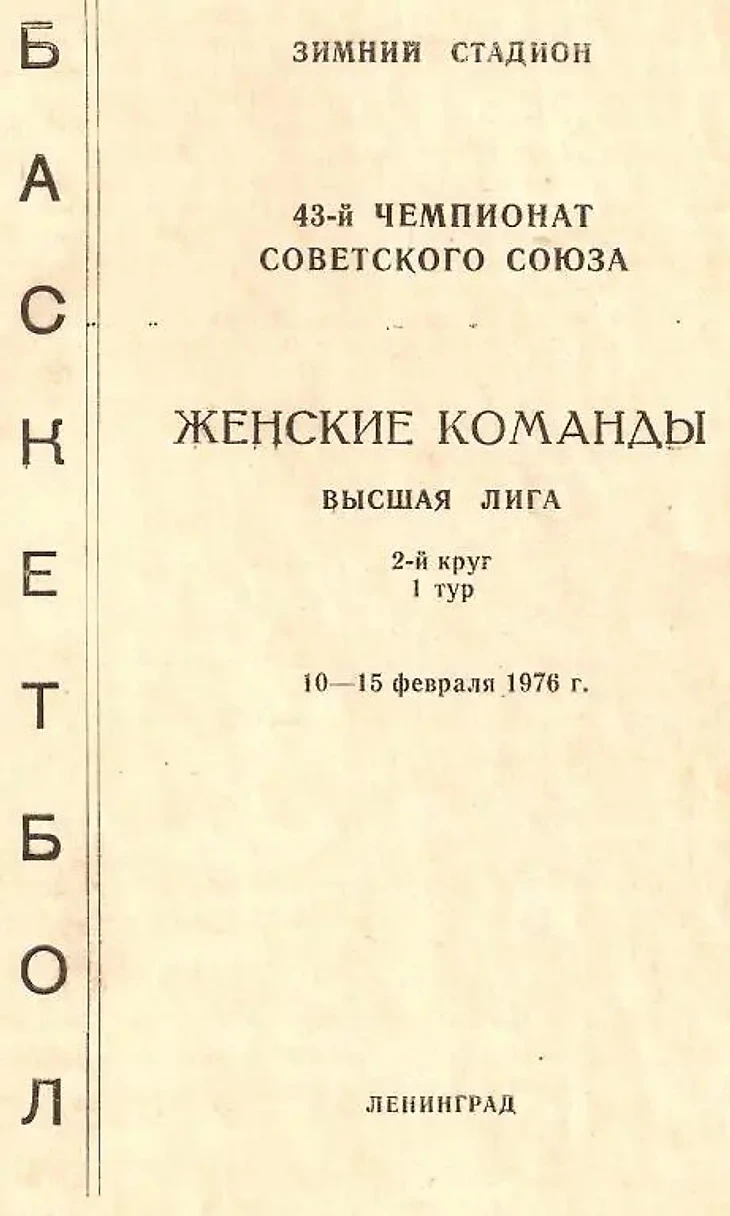 Февраль 1976. Ленинград. Программа первого тура второго круга XLIII чемпионата СССР