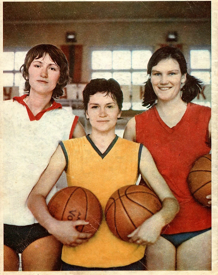 1976. Кандидаты в сборную СССР и лидеры своих команд (слева направо): Нелли Ферябникова («Спартак», Московская обл.), Надежда Шуваева («Университет», Алма-Ата), Вида Шульските («Кибиркштис», Вильнюс)