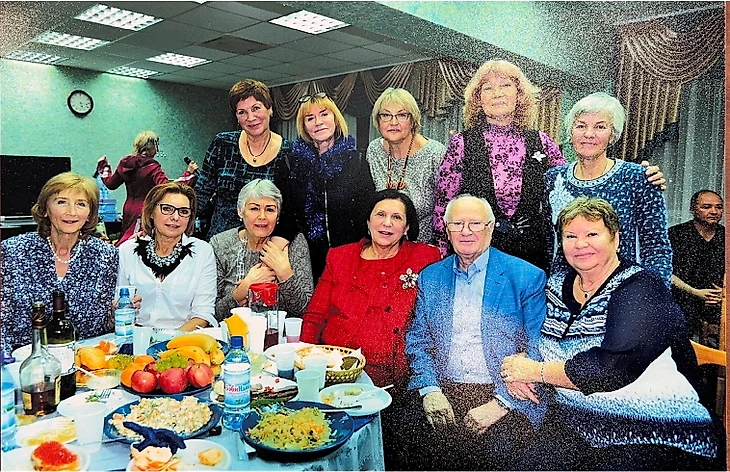 2018. Москва. 45 лет серебру московского «Динамо». Верхний ряд (слева направо): Наталья Ефимова, Надежда Барабанщикова, Наталья Широкова, Татьяна Пименова, Людмила Бубчикова. Сидят: Татьяна Макарычева, Любовь Харитонова, Галина Воронина, Татьяна Овечкина, Евгений Гомельский, Татьяна Гомельская