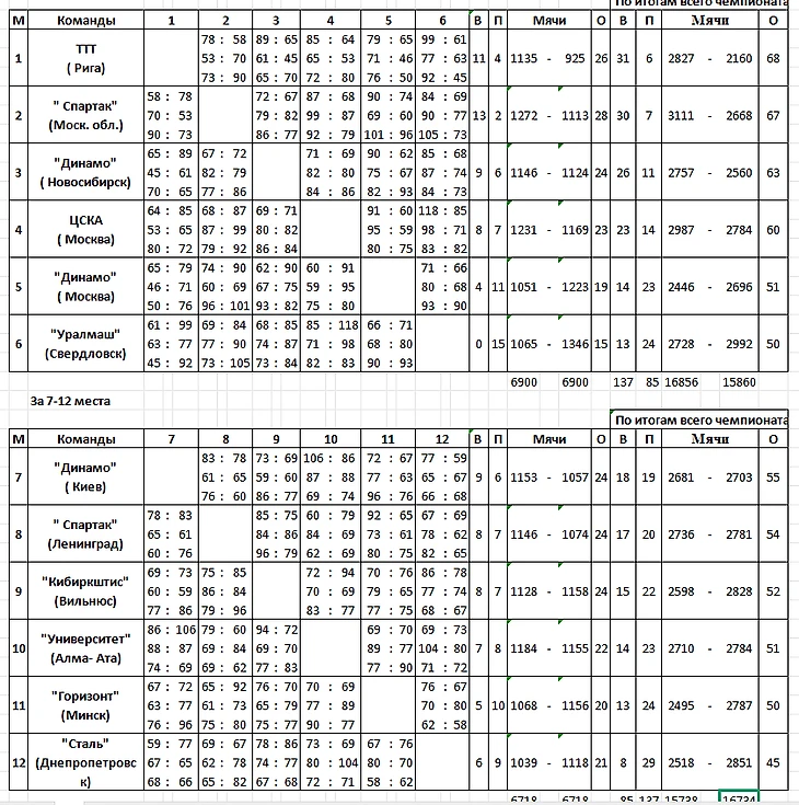 … Если посмотреть на итоговую турнирную таблицу, где ТТТ опередил подмосковный «Спартак» лишь на одно очко, можно подумать, что борьба за золото шла до последнего дня. Но это не так! Завоевав золото, рижанки резко потеряли интерес к турнирной ситуации и проиграли все три оставшихся матча: ЦСКА — 72:80 (40:44), новосибирскому «Динамо» — 65:70 (33:35) и подмосковному «Спартаку» — 73:90 (40:46).