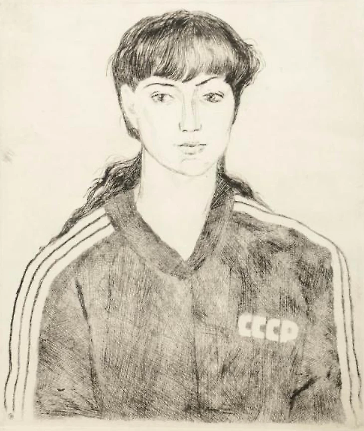 Скетч Людмилы Муравьевой (Рогожиной) в форме сборной СССР. Художник Софья Витухновская (1983)