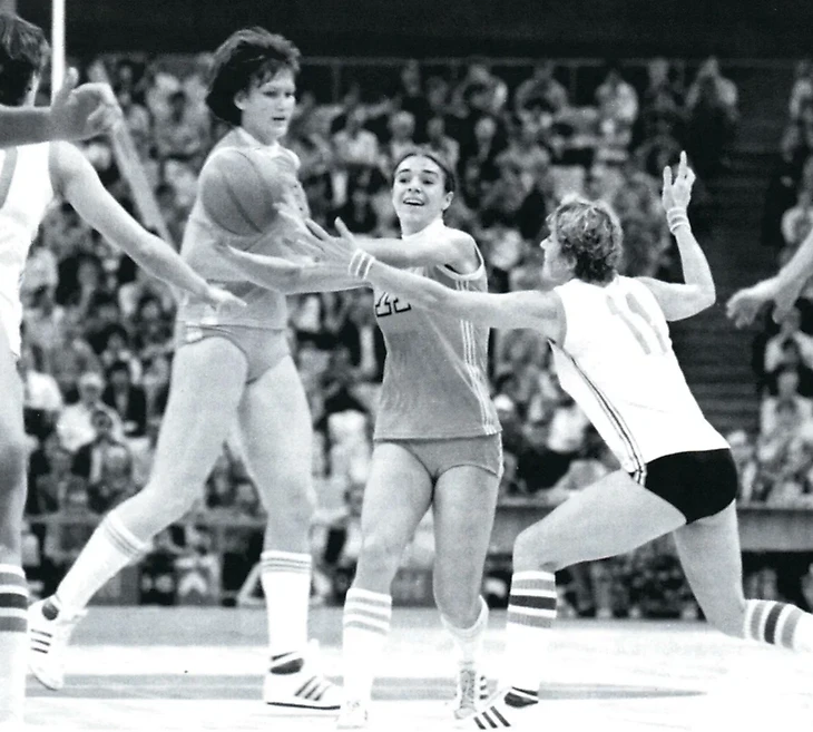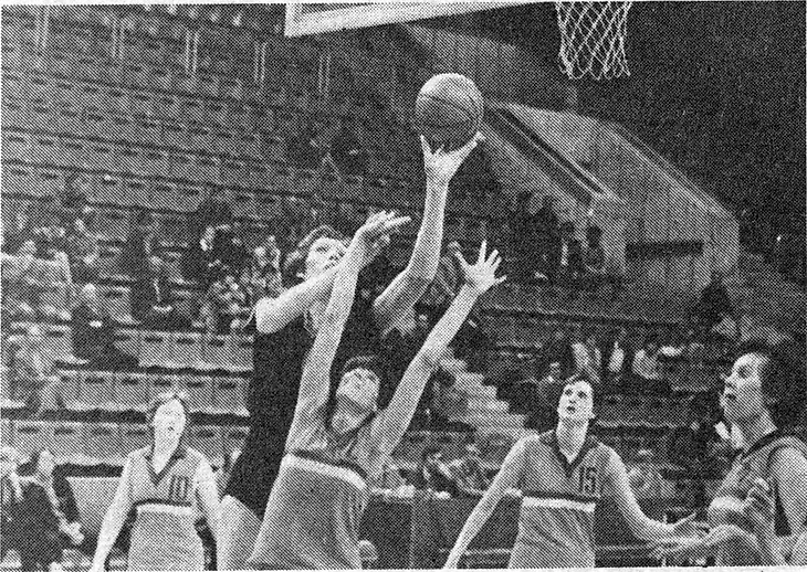 20 мая 1981. Москва. Матч XLVIII чемпионата СССР. ТТТ — «Уралмаш» — 92:45. Ульяна Семенова преодолевает оборону соперниц