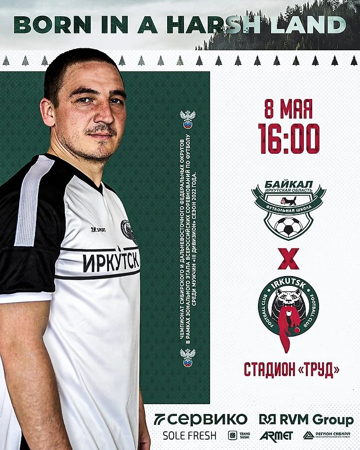 8 мая 2022 года стал знаменательным днём для футбола в Иркутске. Это начало нового сезона 3 дивизиона и первый официальный матч ФК "Иркутск" в лиге. ФК "Иркутск" был образован совсем недавно - 23 июля 2020 года. Большая часть его состава составляют игроки, которые играли за другие клубы Иркутска - "Звезда", "Радиан-Байкал", "Байкал", "Зенит-Иркутск". Сперва это была детская школа, которую организовали иркутские футболисты. После появилась команда на чемпионат города. Практически все игроки имеют статус Легенд для иркутского футбола. Так, например, главный тренер "Иркутска" Александр Штынь провёл 191 матч в составе "Звезды" и "Байкала". Играющий тренер Алексей Ющук (на афише) всю карьеру играл в футбольных клубах из Иркутска и провёл 215 матчей. До этого сезона "Иркутск" играл на Чемпионате Иркутска (3 победы), а также выиграл Чемпионат Иркутской области и дважды становились финалистами Кубка Иркутской области. До сегодняшнего дня самым примечательным матчем "Иркутска" был матч против команды блогеров "Амкал", состоявшийся 29 мая 2021 года. Тот матч закончился со счётом 3:3.
