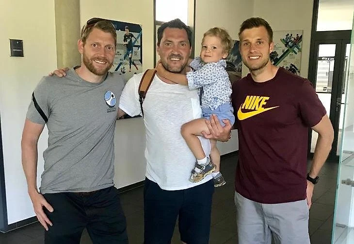 Михаэль Рехнер, Андрей Шпилев с сыном и Фабиан Отте.
