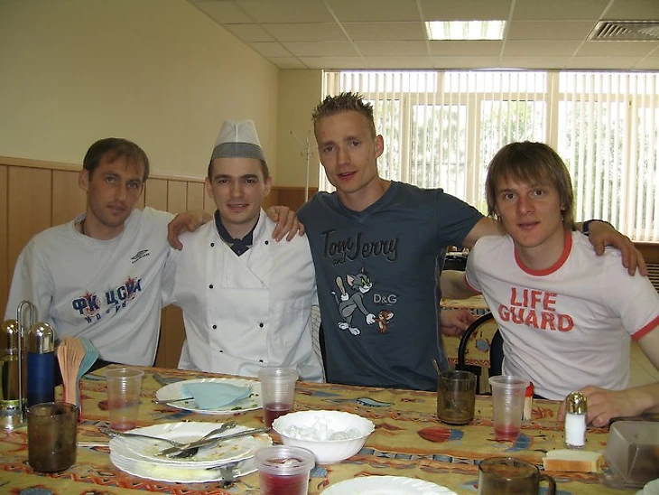 — Легионеры жалуют борщ, пельмени?— У нас Зоран на первых порах категорически отказывался есть супы. А теперь кушает их и в обед, и в ужин. Я как-то поинтересовался: «Что случилось, Зоран?». «Оказывается, они у вас очень вкусные», — говорит. Некоторую еду нужно учиться есть. Не каждый из нас скушает улитку или устрицу, а французы это делают на раз. Здесь то же самое. Думбия, кстати, очень любил борщ – правда, никогда гущу не насыпал, только бульончик. У нас многие иностранцы на супы перешли. Понтус только никак не созреет…