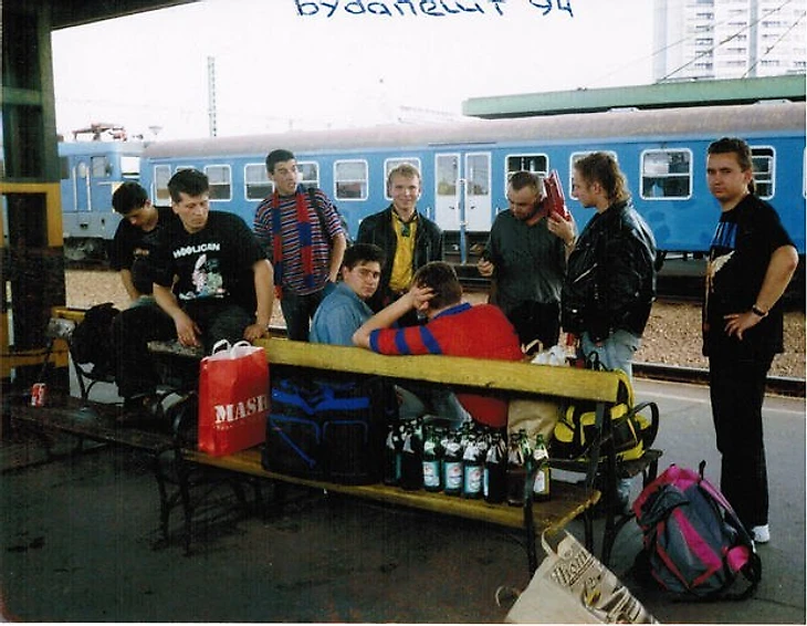 Путешественники прибыли в столицу независимой Венгрии и сразу пошли на стадион. Зрелище, которое они там увидели, поразило: за несколько дней до матча уже был ажиотаж, покупались билеты, за столиками, встроенными прямо в стадион бара «Holsten», сидели здоровые бритоголовые рожи.