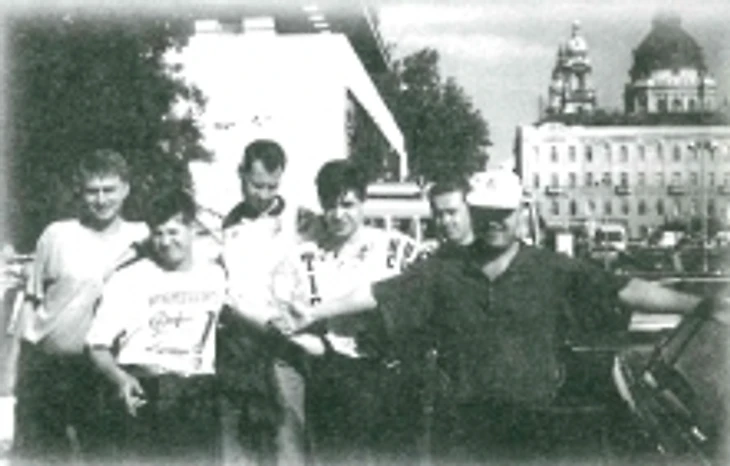 «Мы отправились впятером на поезде Москва - Будапешт. Билеты были до Чопа, за исключением Соколова, который ехал «левым». Это была, конечно, история, как Соколов проходил хохловскую таможню на пятой полке. Вообще, эта Украина нас не порадовала. Где-то в западной ее части случился грязный инцидент. Ну, чего еще от этих хохлов ожидать! Короче, мы на одной станции вышли все с тем лее Соколовым, дабы прикупить не хватавшего нам пива. На мне были тапочки и шорты, Миша тоже как-то легкомысленно одетый. И только мы отошли на приличное расстояние, как поезд поехал. Мы обратно. Бежим, с меня тапочки спадают постоянно, в шоке все, но успели зацепиться за последние вагоны. Еле дух перевели.