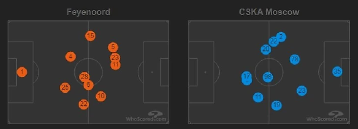 Первый тайм получился тягучим и совсем неинтересным. Обе команды действовали предельно осторожно, выжидая свой шанс. У ЦСКА активность исходила от Эджуке, который чаще всех в составе гостей встречался с мячом. Только вот придумать достойное завершение ему так и не удалось. Нигериец совершал неплохие подходы к воротам, а дальше начинались проблемы. «Фейеноорд» не слишком часто отвечал такими же ленивыми атаками, разве что Стивен Бергейс упустил великолепный шанс открыть счёт, откровенно простив москвичей. Кошмарная десятиминутка