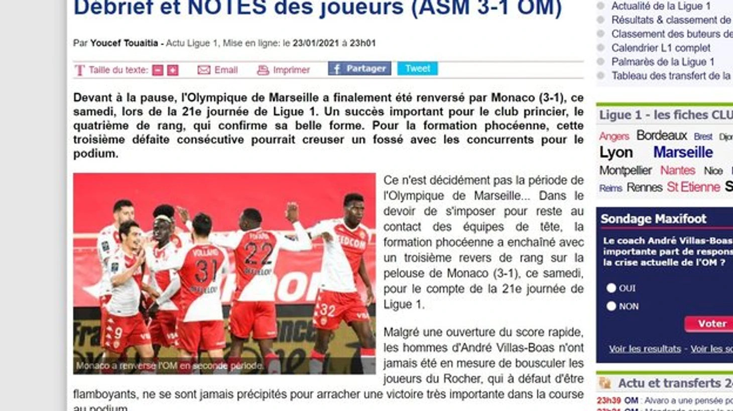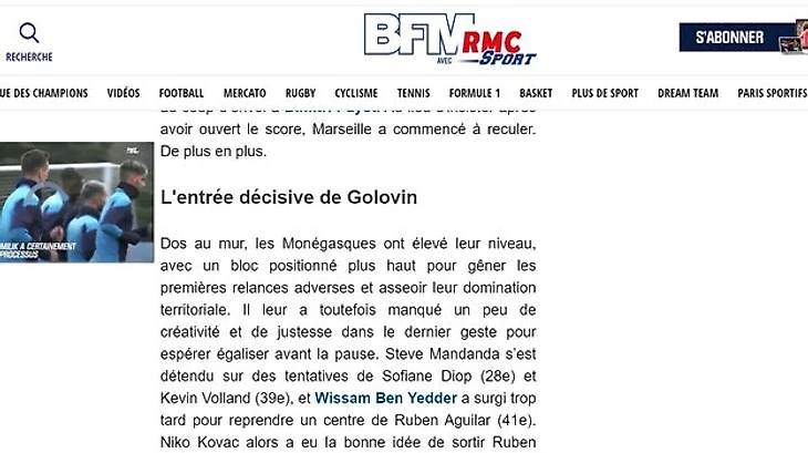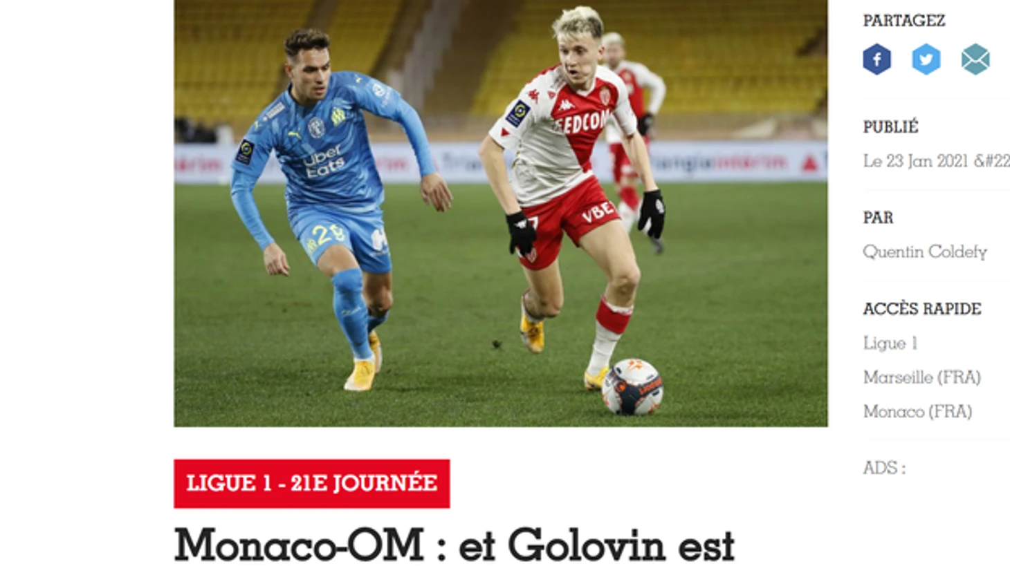 Издание RMC Sport значительную часть своего материала уделило кризису проигравшего четвертый раз подряд «Марселя», а у монегасков отметило ключевой выход Головина.