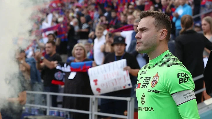3-й тур. 4 августа 2024 года. ЦСКА — «Оренбург» — 5:1. На повязке координаты «ВЭБ Арены». Современный стадион стоит на месте знаменитой армейской «Песчанки», куда маленький Игорь впервые попал в шесть лет. Для него это не сухие цифры, а теплая память о детстве, первых отбитых мячах, мальчишеских победах и поражениях. Его феноменальная верность клубу — родом из детства.