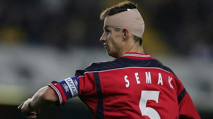 20 октября 2004 года. Лондон. Стадион «Стэмфорд Бридж». «Челси» — ЦСКА — 2:0. Капитан армейцев Сергей Семак покидает поле из-за травмы, капитанская повязка будет вот-вот доверена юному голкиперу Игорю Акинфееву. Фото Александр Федоров, «СЭ»