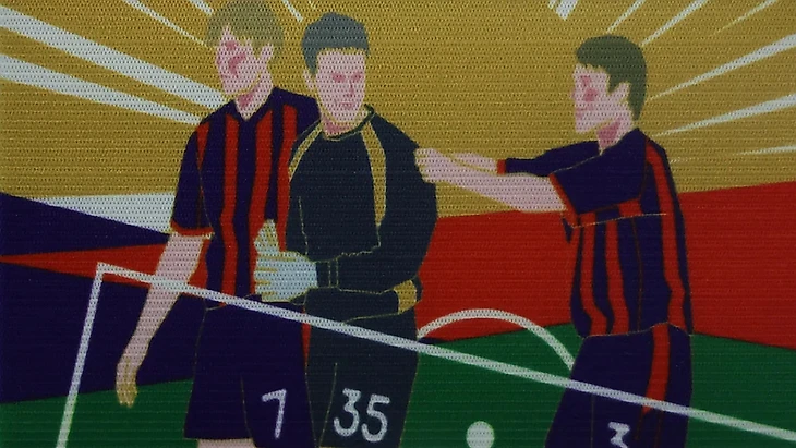 Позже Игорь попросил сделать общую картину из всех повязок за сезон, чтобы подарить родителям.