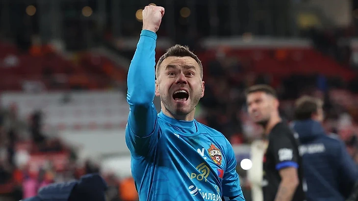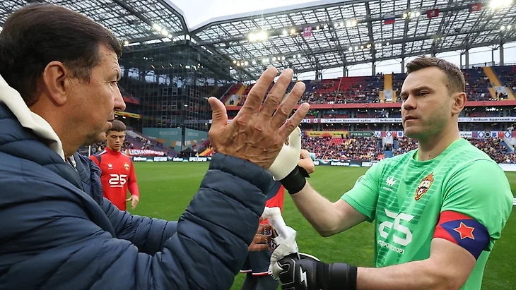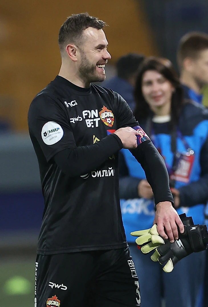 26-й тур. 26 апреля 2025 года. «Спартак» — ЦСКА — 1:2. На этот матч Игорь Акинфеев вышел в повязке, посвященной двухсотому дерби в истории отношений красно-синих с красно-белыми (не путать с количеством матчей в чемпионате России). Понятны эмоции капитана армейцев после победы в столь принципиальной игре.