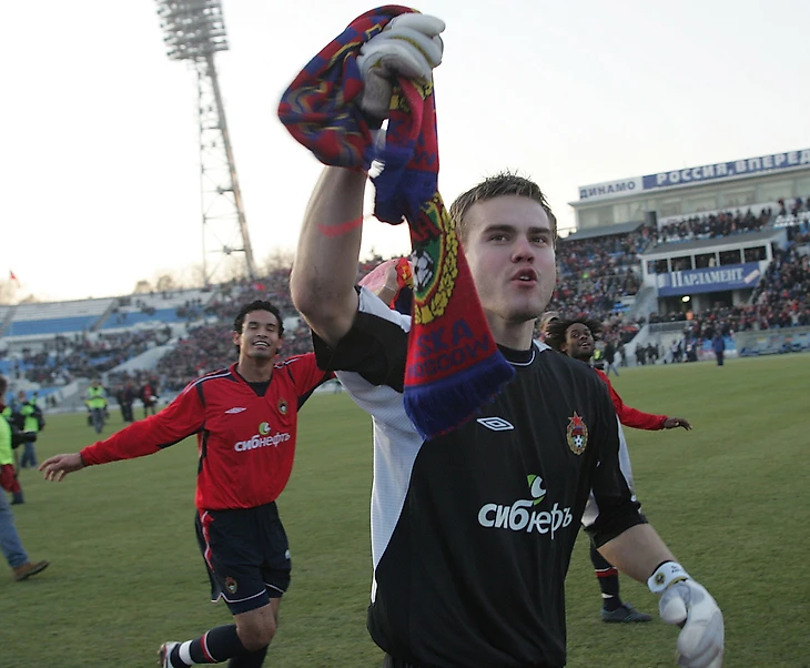 Так голкипер попал в добрые и одновременно ежовые рукавицы Чанова и Газзаева. Акинфеева взяли на сборы с основой, а уже в марте 2003-го 16-летний школьник дебютировал за взрослый ЦСКА в официальном матче Кубка премьер-лиги против «Зенита».
