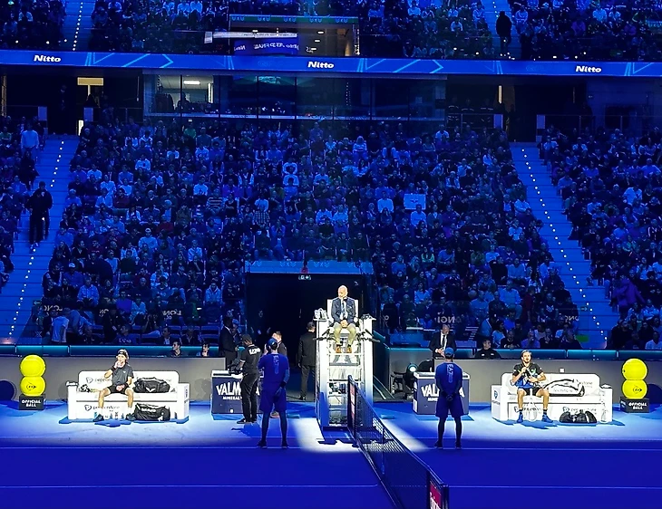 Ноябрь 2023, солнечная золотая осень в Турине. На 15-тысячной арене «Пала Альпинтур», принимавшей хоккейный турнир Олимпиады-2006 и концерты Depeche Mode, Muse и Мадонны, проходит Итоговый турнир лучшей восьмерки мужского тенниса. Рядом с ареной – стадион футбольного «Торино», где открывалась та самая Олимпиада-2006, а с другой стороны – стильная фан-деревня для гостей турнира.