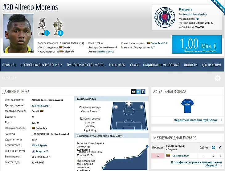 Данный игрок по оценке трансфермаркта стоит 1 млн.евро и это явно заниженая стоимость. Пока игрок приносит прибыль всем своим клубам за которые играл. Медельин заработал 500 тыс.евро, ХИК 700 тыс.евро и очевидно что Рейнджерс также вложенные в трансфер игрока 1,2 млн.евро сможет вернуть и ещё и заработать.