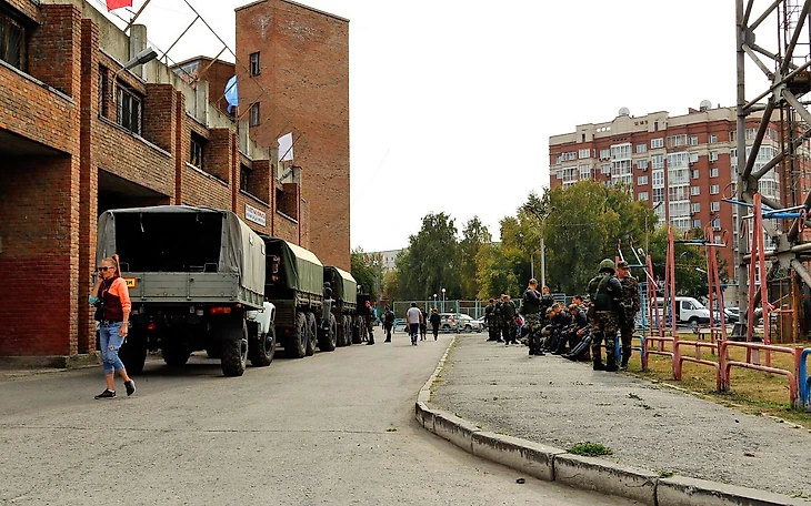 Новосибирск. Если не знать, что это один из домашних матчей "Сибири", то можно подумать будто фото выслано прямиком из Грозного образца 1995 года или Донецка 2015-го. Лишь дама в оранжевой кофточке возвращает к реальности