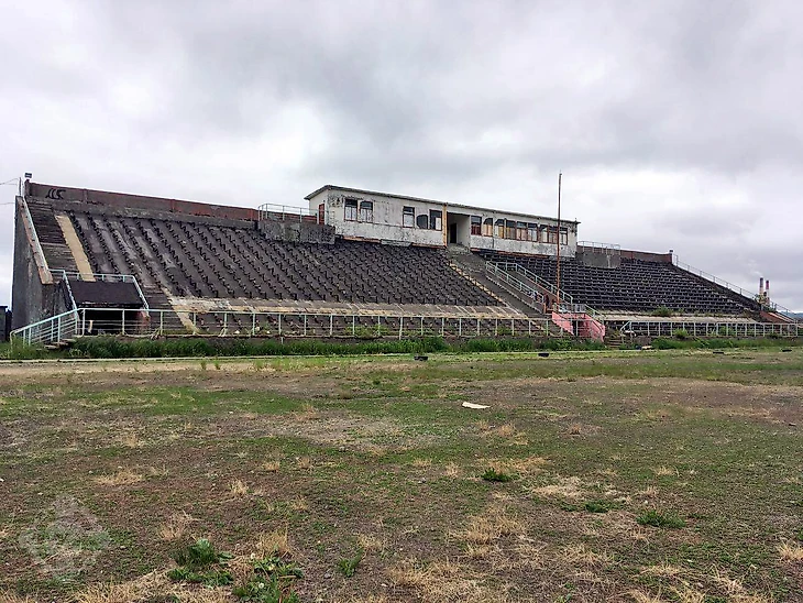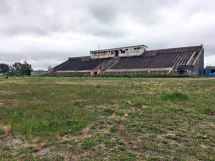 Но немного предыстории. Главным в городе вообще был "Спартак" - крупная арена близко к центру города, видала всякое: взлёты и падения местного "Вулкана", концерты разномастных гастролёров, да и вообще место популярное собраться хоть вокруг мяча, хоть вокруг флакона портвешка . Грустно ему было, на самом деле: ни время, ни климат не щадили. Но возведён был квалифицированно, военными, да так, что лишь при его сносе выяснилось, что в принципе и хорошего ремонта бы хватило...